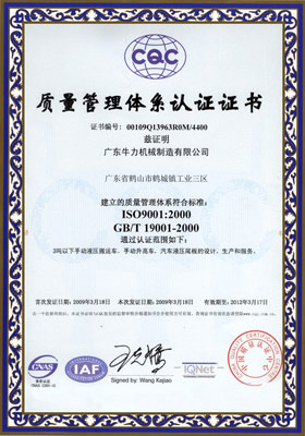 公司先后獲得了ISO9001質量管理體系認證,歐洲CE/GS認證,SGS國際認證服務公司認證審核,國家質監(jiān)總局頒發(fā)的特種設備制造許可證,廣東省高新技術企業(yè)認證,廣東省工程技術研究中心等。