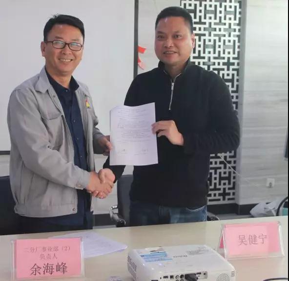 總經理吳健寧與事業二部負責人楊遠簽暑協議