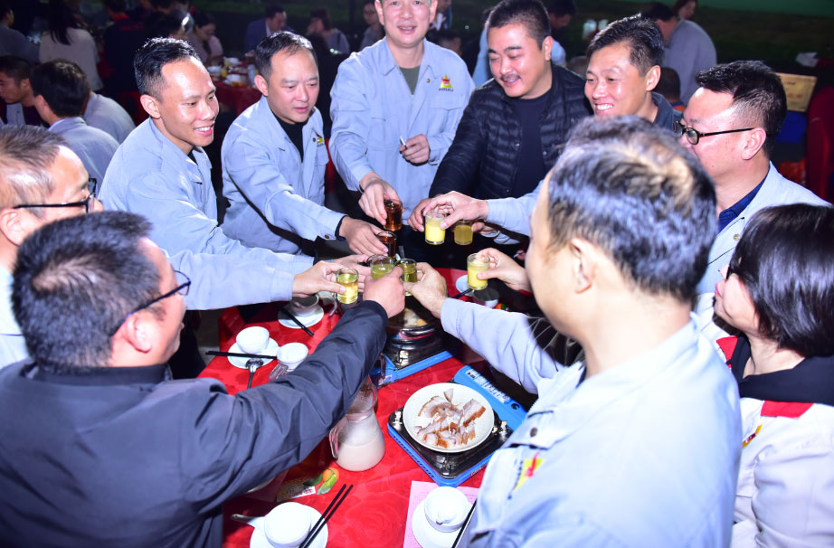 公司董事會成員和高管們向到場嘉賓和員工祝酒