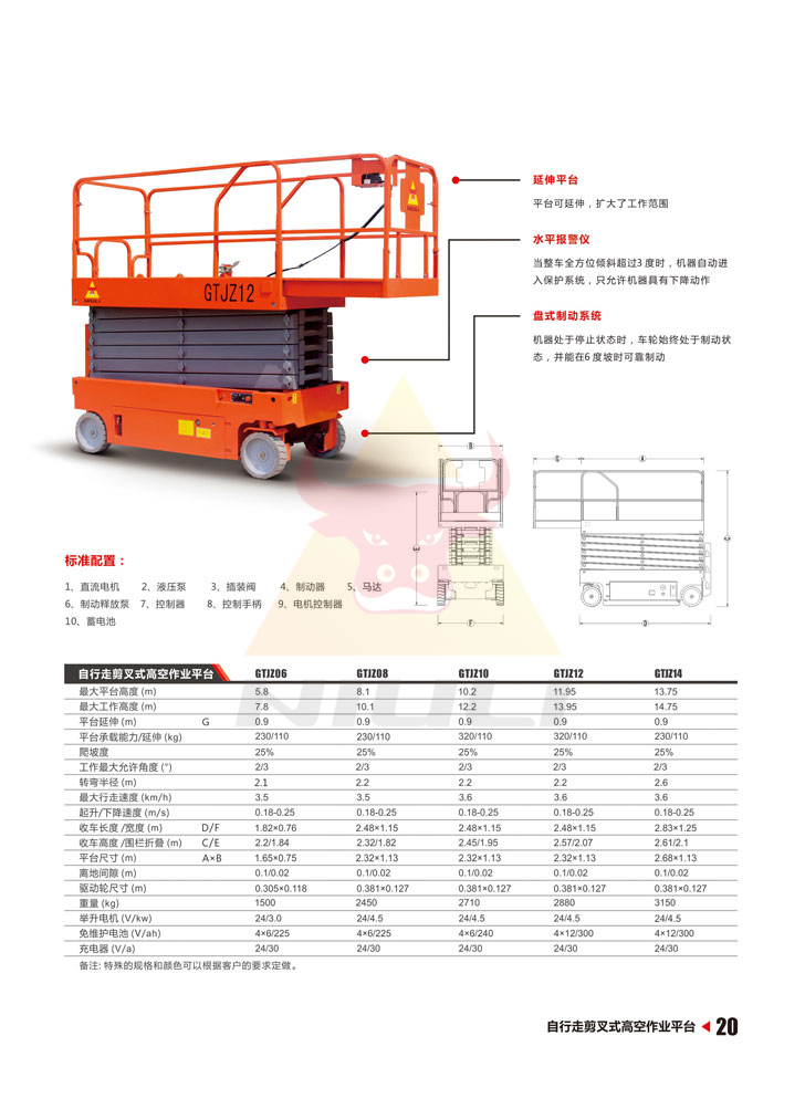 | 自動式剪叉高空作業平臺 | GTJZ06 | GTJZ08 | GTJZ10 | GTJZ12 | GTJZ14 |